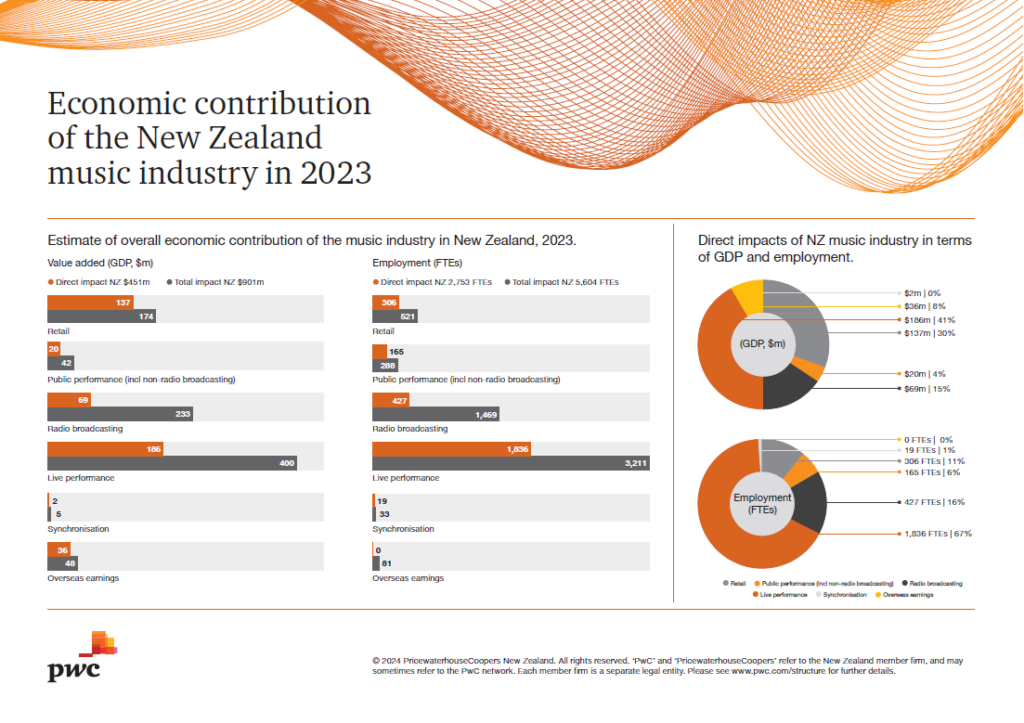 Recorded Music NZ has published the report on the Economic Contribution of the Music Industry in 2023. The report was commissioned by Recorded Music NZ with the support of APRA AMCOS and the NZ Music Commission and conducted by PwC.